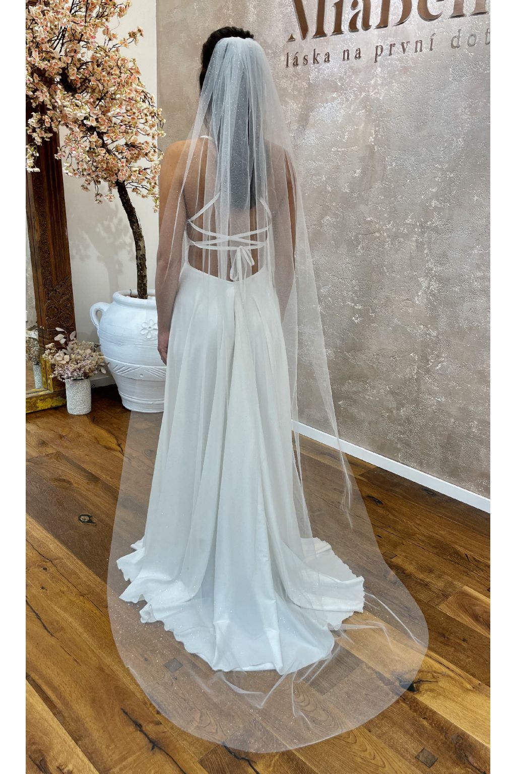 Doporučuji nechat závoj volně vyset, aby se vám hezky narovnával.