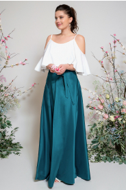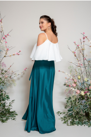 Sukni doporučujeme kombinovat s naším jednoduchým topem (najdete v také v kategorii družičky), který si můžete vybrat s libovolným výstřihem (V výstřih, s rukávy, lodička, na ramínka, zavazování za krk). Náš top je k sukni naprosto ideální, protože má prodlouženou délku, je ušitý ze stejného materiálu, jako sukně a pod lehounkou sukní se ukončení topu vůbec neprotlačuje.
