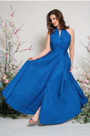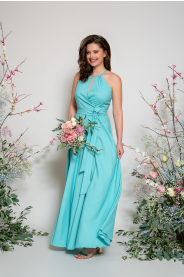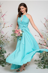 Šaty odhalující ramena mají na předním díle překlad a za krkem se vážou na mašličku. Tento střih šatů doporučuji velikostem (36-40). Pod šaty je možné si vzít podprsenku bez ramínek.