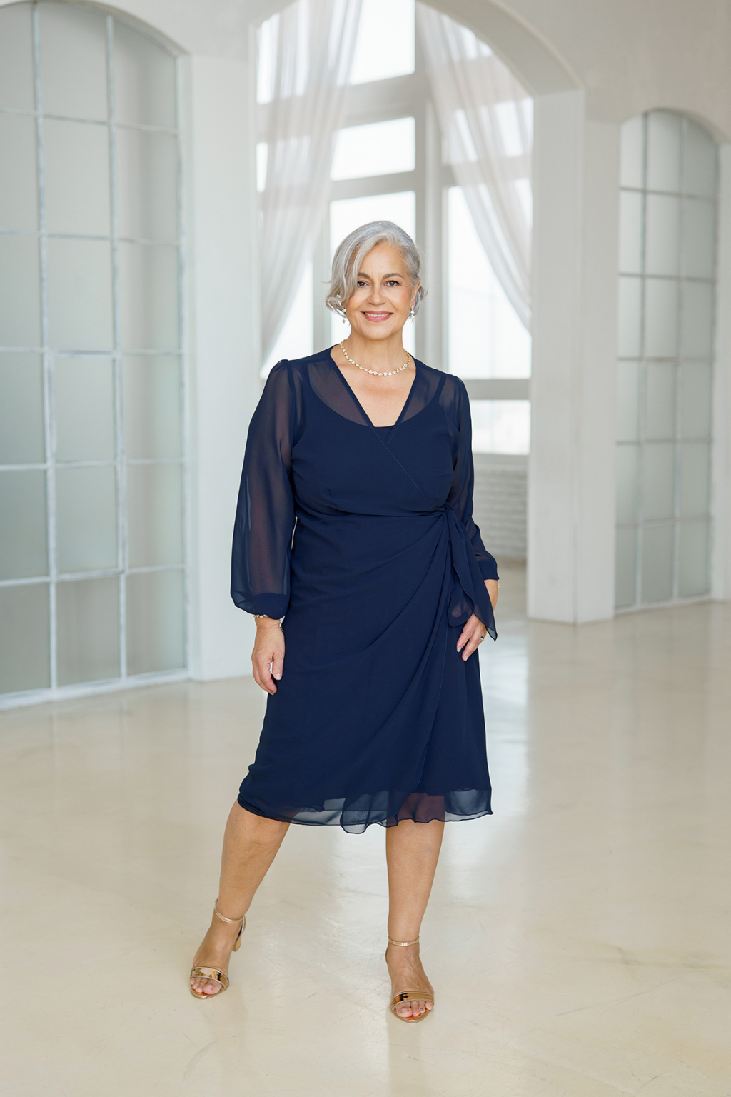 Na obrázku jsou šaty v barvě NAVY.