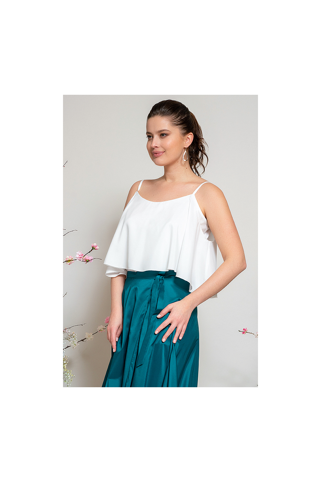 - top s volánkem i s větším volánem je ideální pokud máte menší prsa a chcete je volánkem mírně zvýraznit. Top na špagetové ramínka bez volánku je vhodný pro souměrné postavy. Top doporučujeme nosit s podprsenkou bez ramínek