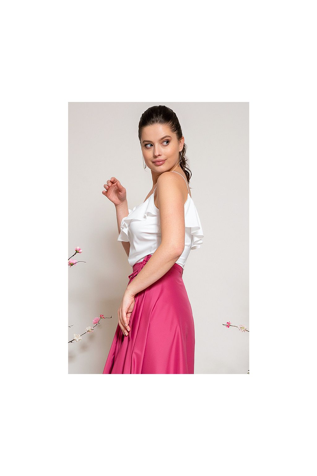 - top s volánkem je ideální pokud máte menší prsa a chcete je volánkem mírně zvýraznit. Top na špagetové ramínka bez volánku je vhodný pro souměrné postavy. Top doporučujeme nosti s bezramínkovou podprsenkou.