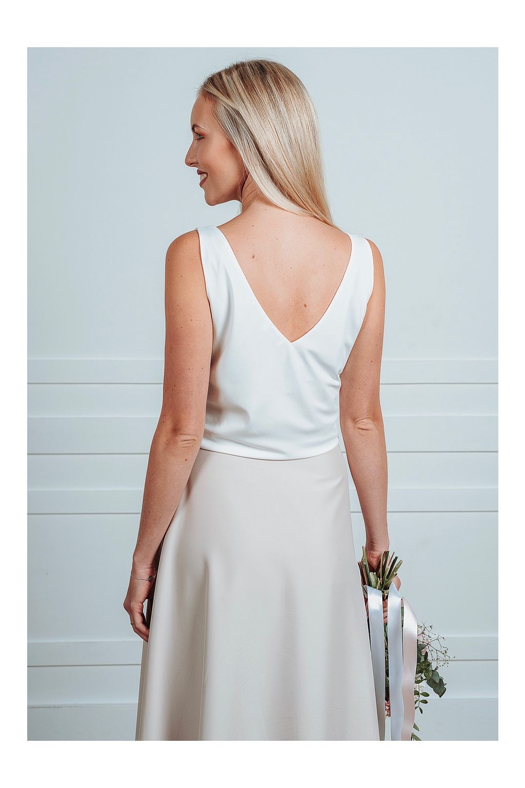 - top se zavazováním za krk - vhodný pro souměrné postavy a užší ramena. Doporučujeme nosit s bezramínkovou podprsenkou.
