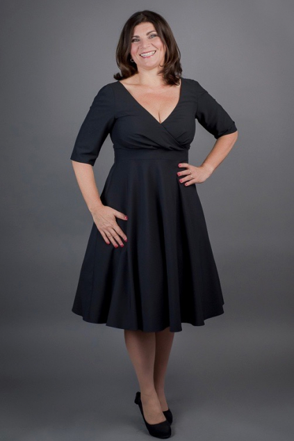 Tyto retro šaty jsou ušité z džínové látky modré barvy s mini puntíkem. Jsou inspirované módou 50. let. Díky použité džínové látce působí šaty neformálním dojmem, a proto jsou vhodné na méně významné splečenské události, ale můžete si je klidně vzít i do práce, nebo do školy. Model ADELE má širokou bohatou kolovou sukni a rovný lodičkový výstřih a 3/4 rukáv ukončený rozparkem. Díky svému střihu šaty svědčí všem typům postav. Doplnit je můžete make-upem v retro stylu. Šaty lze zakoupit v konfekčních velikostech, nebo je možné zadat vlastní rozměry a šaty ušít na zakázku. Součástí šatů je kvalitní pásek. Šaty jsou focené se spodničkou, která není součástí šatů, k dokoupení ji najdete v kategorii Originální výběr - spodničky.