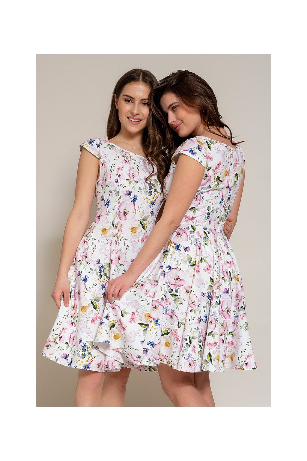 Krásné a nesmírně pohodlné letní šaty s květinovým vzorem jsou určené pro každou romantickou dámu. Hodí se pro méně formální společenské události, ale můžete si je klidně vzít do práce, školy, na večeři s partnerem, nebo zahradní oslavu. Prostě budou vaším oblíbeným společníkem celé léto. Jsou inspirované kombinací 50. let a současnými trendy. Vybírat můžete ze dvou oblíbených střihů: dílové šaty s áčkovou sukní (modelka vlevo), nebo prostřižené v pase s kolovou sukní (modelka vpravo). Šaty lze zakoupit v konfekčních velikostech, nebo je možné zadat vlastní rozměry a šaty ušít na zakázku.