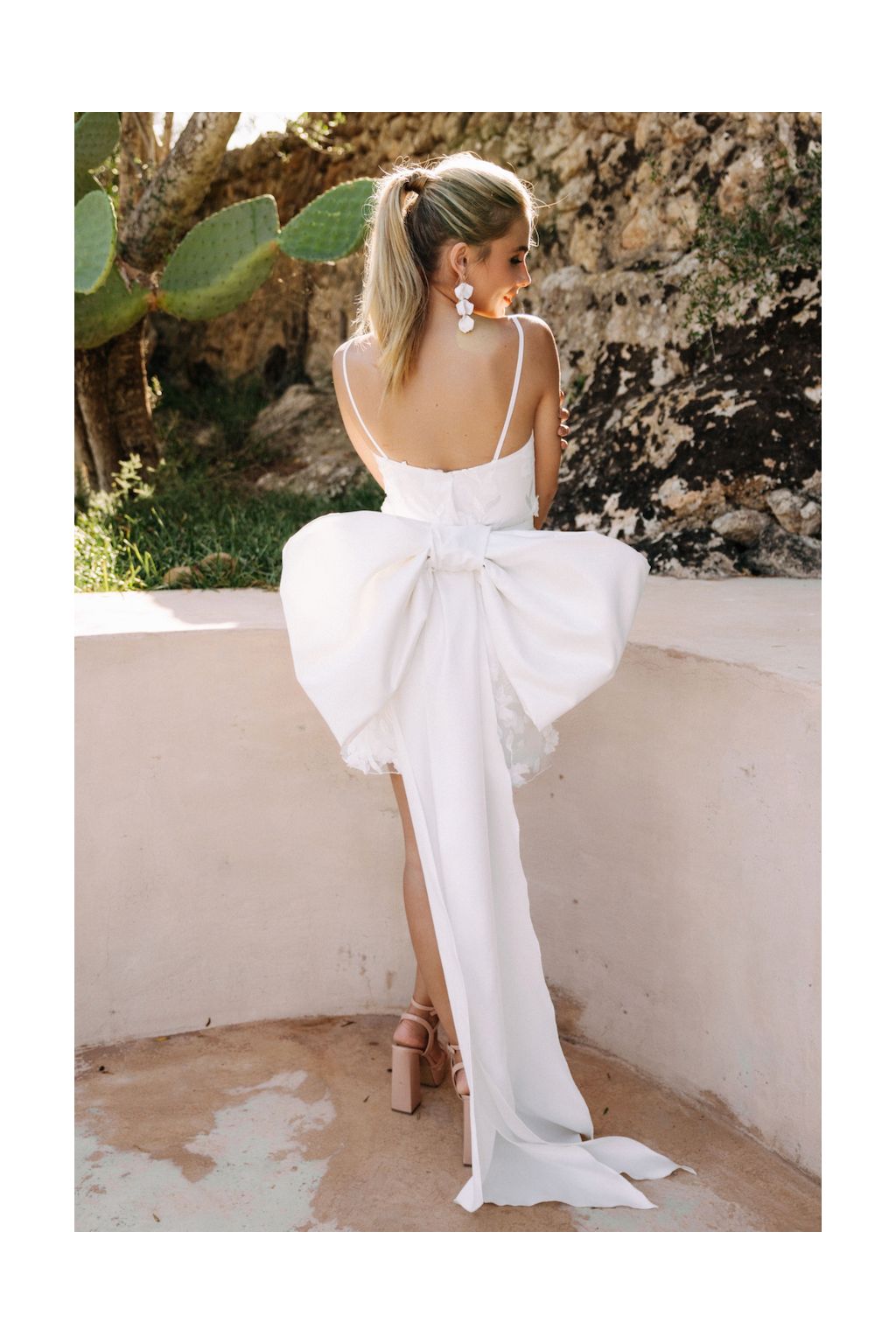 Svatební šaty "Adele-mini" představují ideální kombinaci elegance, hravosti a neotřelého designu. Na první pohled vás okouzlí jejich krátký střih, díky čemuž jsou perfektní nejen jako hlavní svatební róba, ale také jako šaty na převlečení pro druhou část oslavy. Tato unikátní kreace je precizně ušita z nádherné květinové krajky, která dodává šatům něžný a romantický vzhled. Delikátní tenká ramínka ladně navazují na upnutý živůtek a eleganci pouzdrové sukně. Co ale činí tyto šaty skutečně výjimečnými, je efektní obří mašle, která dodává šatům moderní a odvážný twist. Pro ty, kteří preferují jednodušší vzhled, je možnost zakoupit šaty i bez této dominantní mašle. A pokud byste chtěli mašli kombinovat s jiným outfitem, nabízíme ji i jako samostatný doplněk za cenu 3.490 Kč. Aby šaty "Adele-mini" dokonale kopírovaly vaši siluetu a zdůraznily všechna vaše kouzla, ušijeme je přímo na míru. V těchto šatech se stanete neodolatelnou nevěstou, na kterou se nikdo nezapomene podívat.