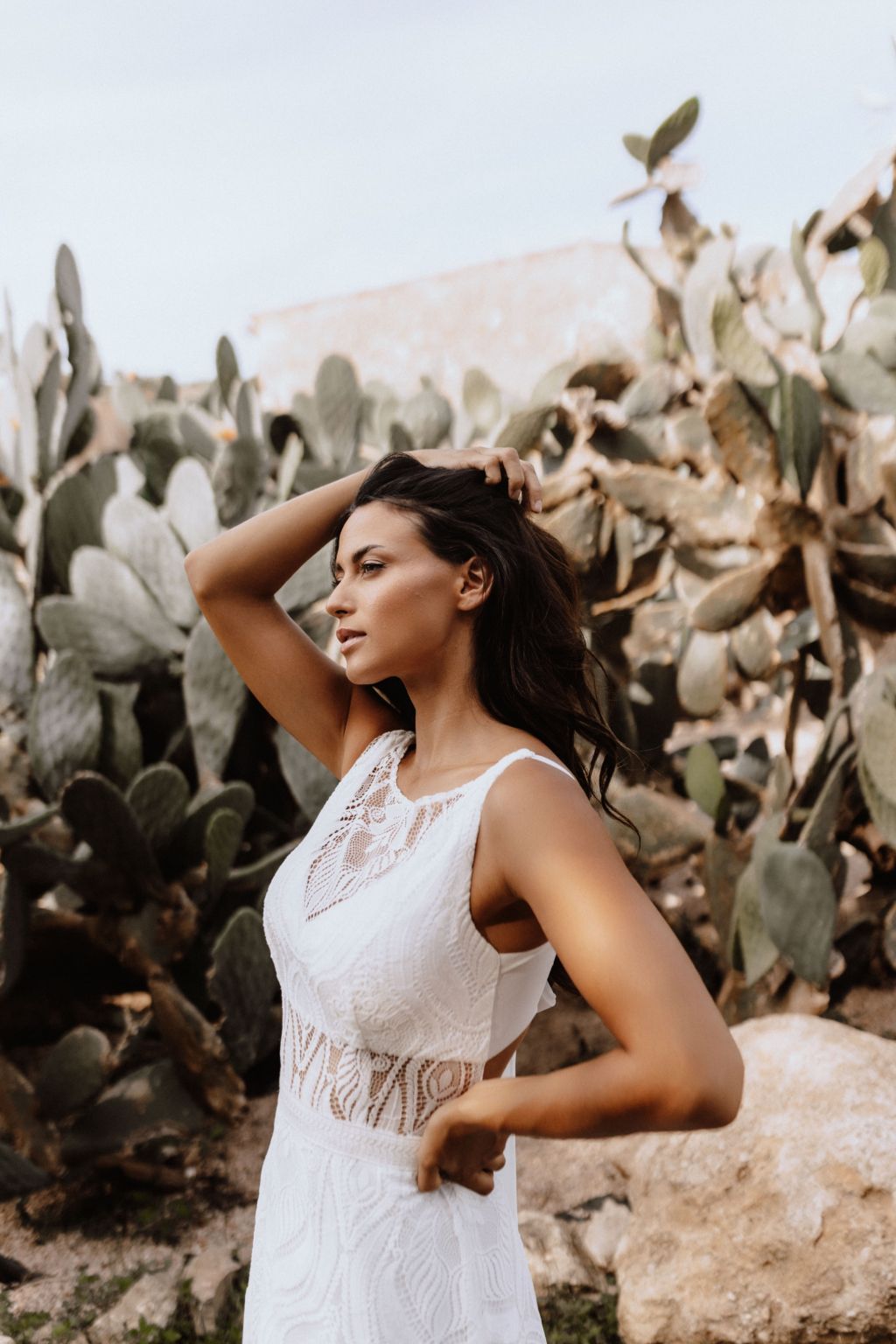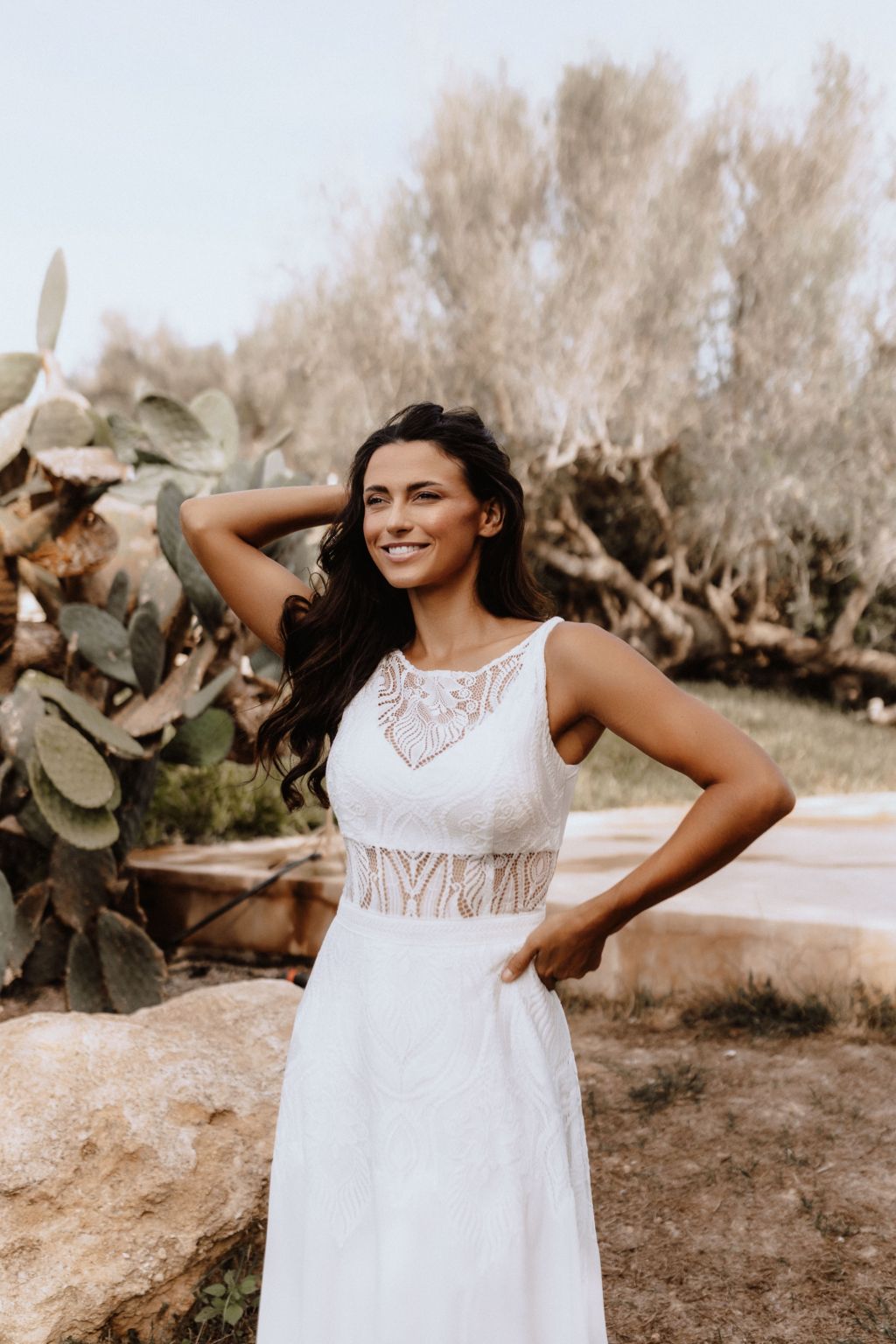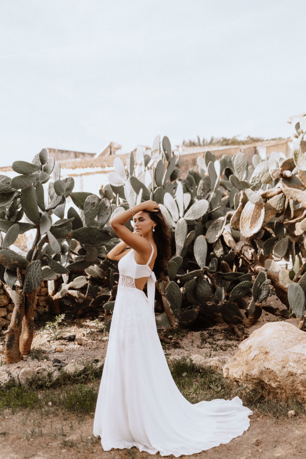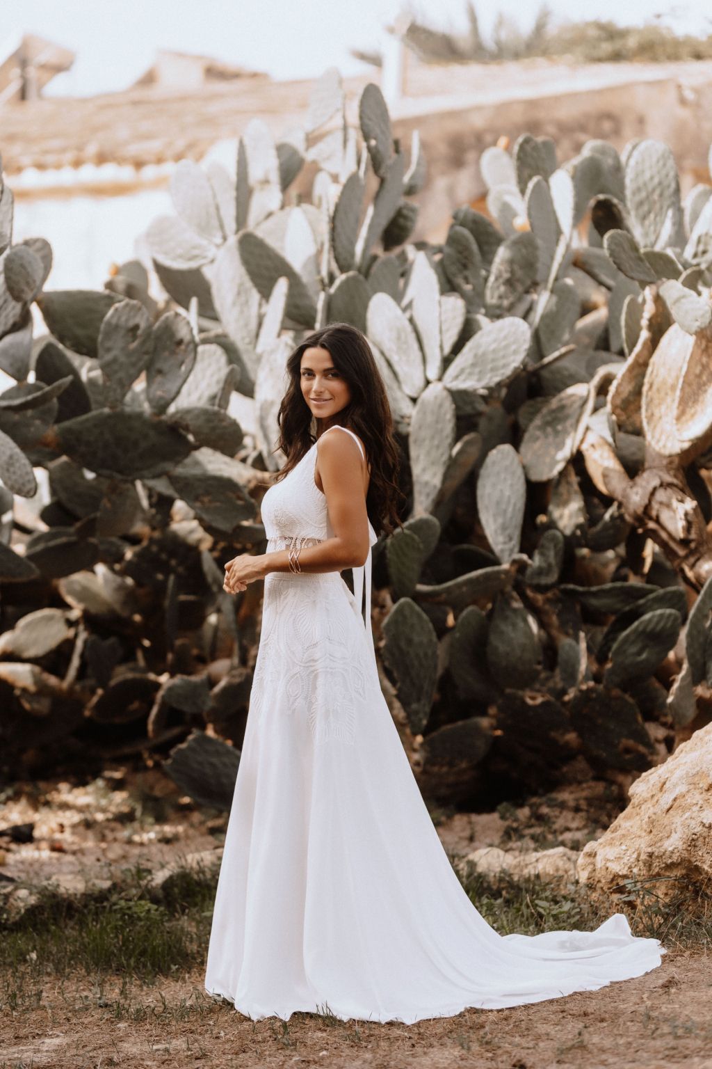 Svatební šaty "Amara" představují kvintesenci bohémské elegance. Tyto originální šaty jsou zhotoveny z lehké ornamentální krajky a šifonu, což jim dodává vzdušný a etéři vzor. Zadní díl šatů je zdoben unikátním zapínáním na mašličku, které dodává osobitý charakter a půvab. Průhledný výstřih a zjemněný prostřih v pase podtrhují ženskou siluetu, zatímco možnost doplnění dlouhými nařasenými rukávy do gumičky přináší další vrstvu adaptability a stylu. Tyto šaty nejsou pouze módním prohlášením, ale také příslibem dokonalého padnutí, protože vám je ušijeme přesně na míru. Objevte svou bohémskou duši v šatech Amara a staněte se hvězdou svého svatebního dne.