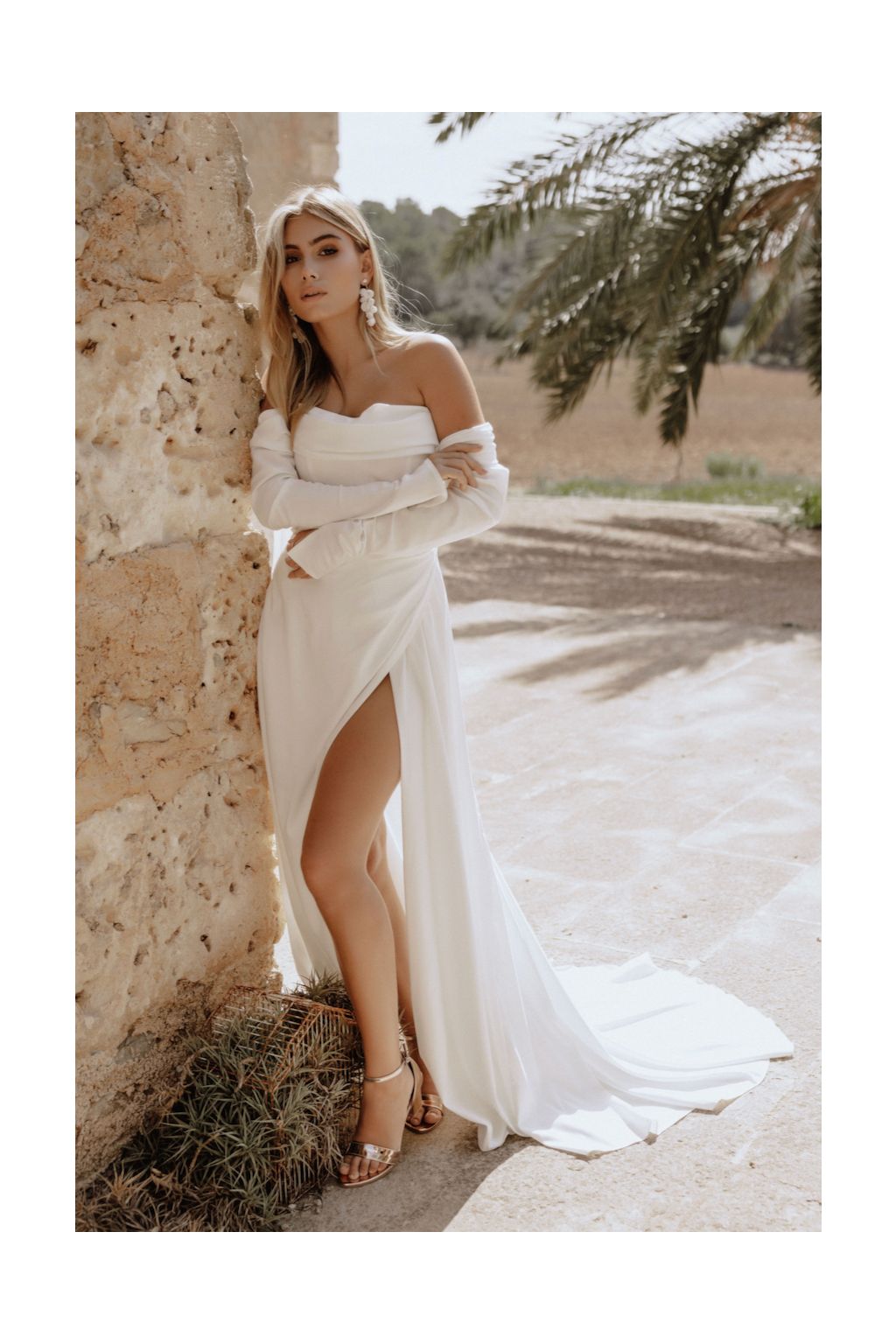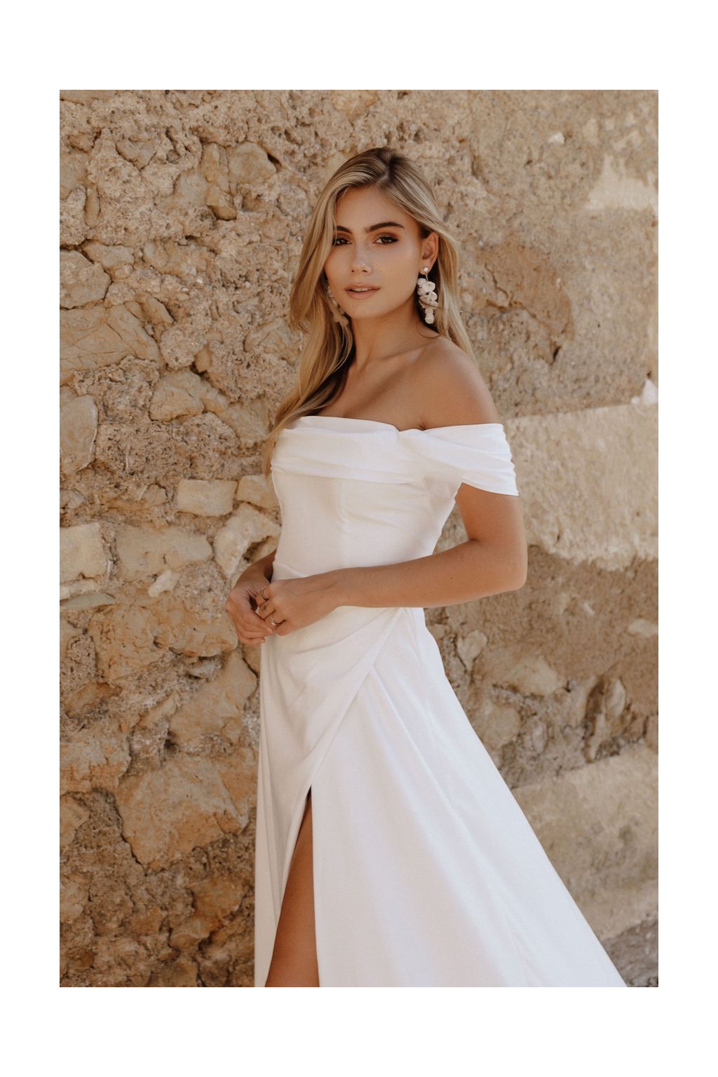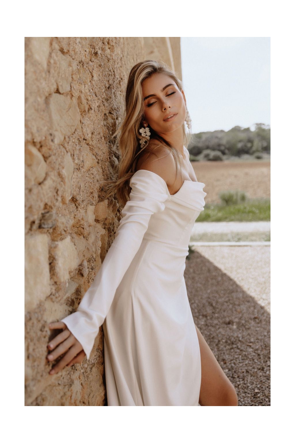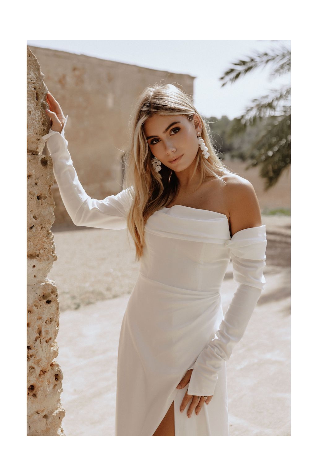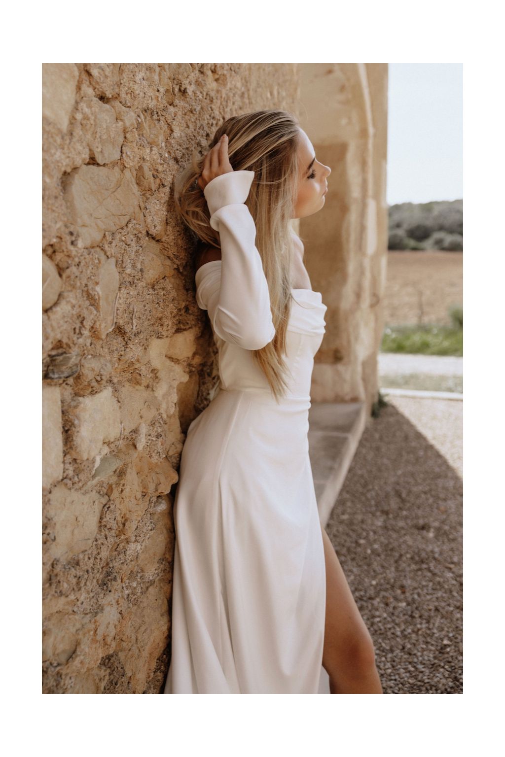 Svatební šaty "Anna" jsou symbolem moderní elegance a adaptability. Tyto originální moderní svatební šaty nabízejí trojici nositelných stylů, což umožňuje nevěstě vybrat si mezi dlouhými rukávy, spadlými ramínky nebo osvěžujícím bezramenným vzhledem. Korzetový živůtek zdobený jemným řasením na prsou a tradičním šněrováním na zádech dodává šatům romantický nádech, zatímco elegantní užší sukně s rafinovaným řasením a odvážným rozparkem přidává nádech dravosti. Každý detail těchto šatů je navržen tak, aby zdůraznil krásu a siluetu nevěsty. A co je nejlepší? Šaty Anna vám ušijeme přímo na míru, což zajišťuje, že budou perfektně sedět a doplňovat vaši postavu na den, kdy budete středem pozornosti.