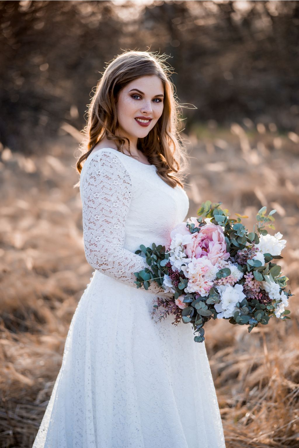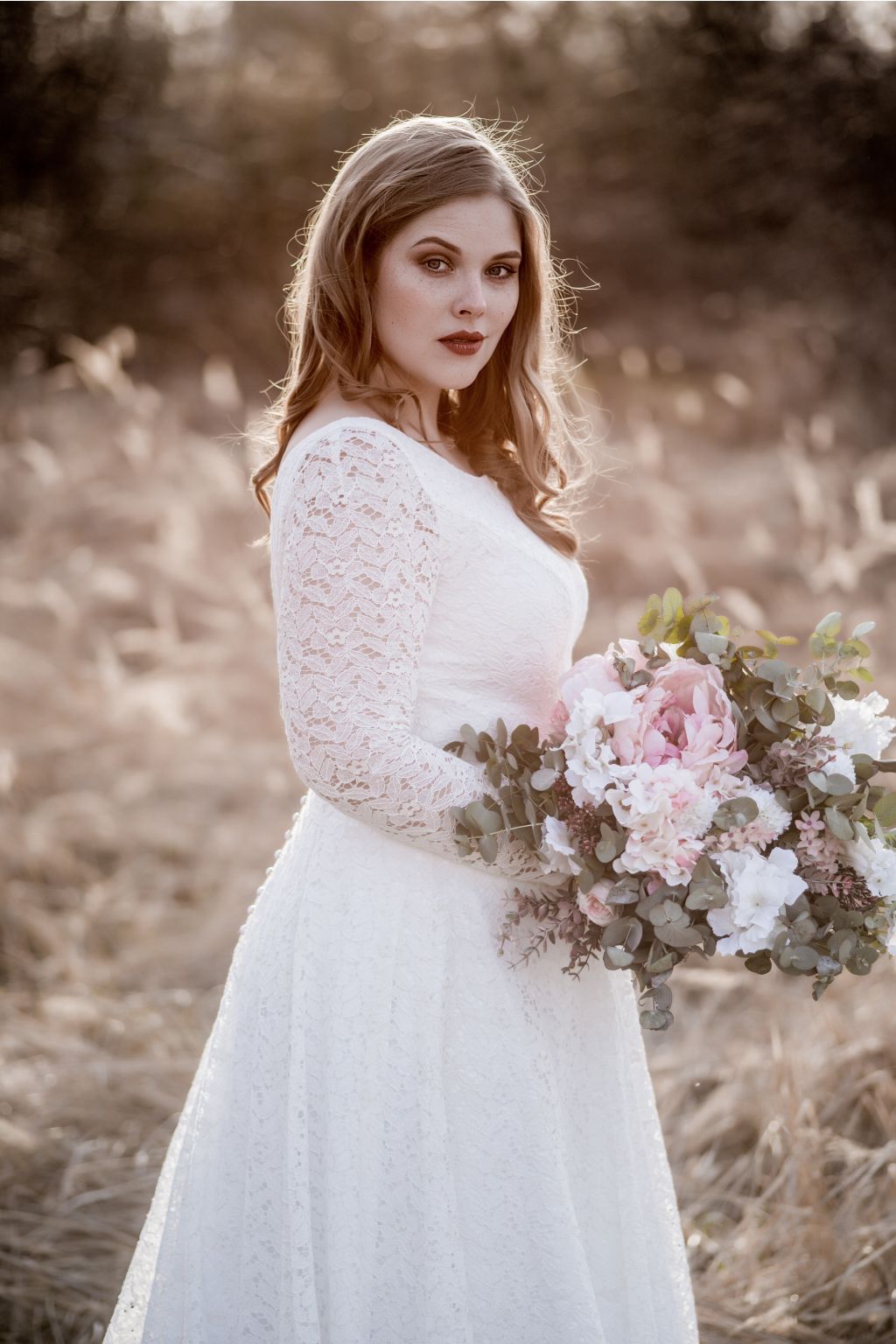 Nádherné jednoduché svatební šaty se hodí pro nevěsty, které mají rády bohémský styl a chtějí zdůraznit svoji ženskost. Šaty jsou ušité z příjemné bavlněné krajky. Šaty jsou podšité jemnou elastickou podšívkou v krémové barvě. Délka šatů je 155 cm od ramene k přednímu lemu. Šaty doporučuji doplnit květinovým věnečkem.