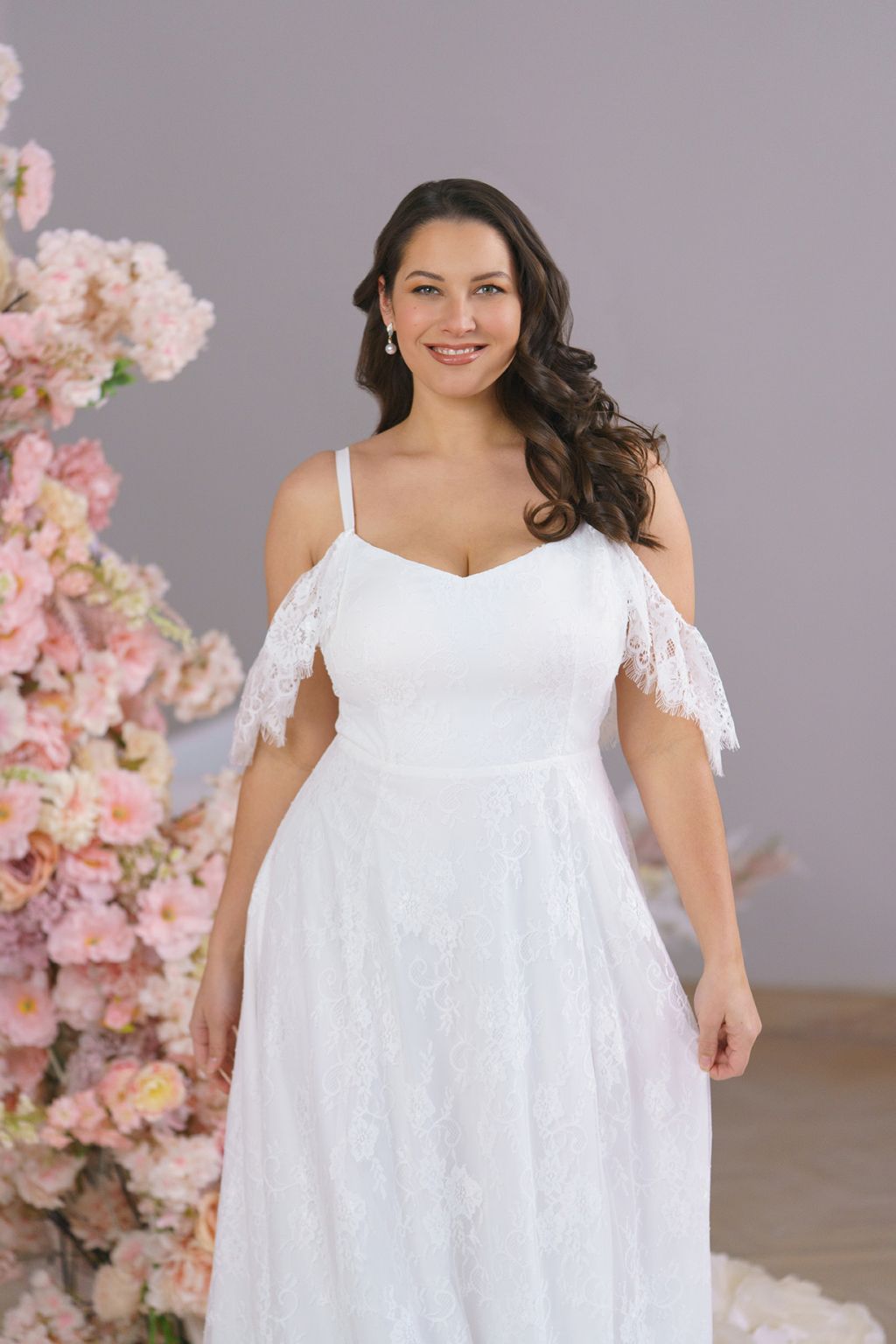 Model Nelis jsou šaty, které v sobě nesou hravost letní louky a jemnou romantiku. Odhalená ramena v kombinaci s krajkovými rukávky působí lehce a svěže, zatímco splývavá sukně s rozparkem dodává nevěstě přirozenou volnost pohybu. Decentní krajkový vzor na celých šatech podtrhuje něžnost a ženskost, zatímco střih lichotí postavě. Nelis jsou šaty pro nevěstu, která chce působit přirozeně, mladistvě a uvolněně – jako by si svůj svatební den prožila uprostřed rozkvetlého pole plného divokých květin.