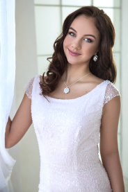 Proměňte se v elegantní glamour nevěstu v romantických svatebních šatech jakoby ušitých z kapek rosy. V těchto jemných šatech se budete cítit báječně. U šatů je možné změnit hloubku předního i zadního výstřihu a taky délku rukávů. Délka šatů je 155 cm od ramene k přednímu lemu. Zip šatů je na zádech.