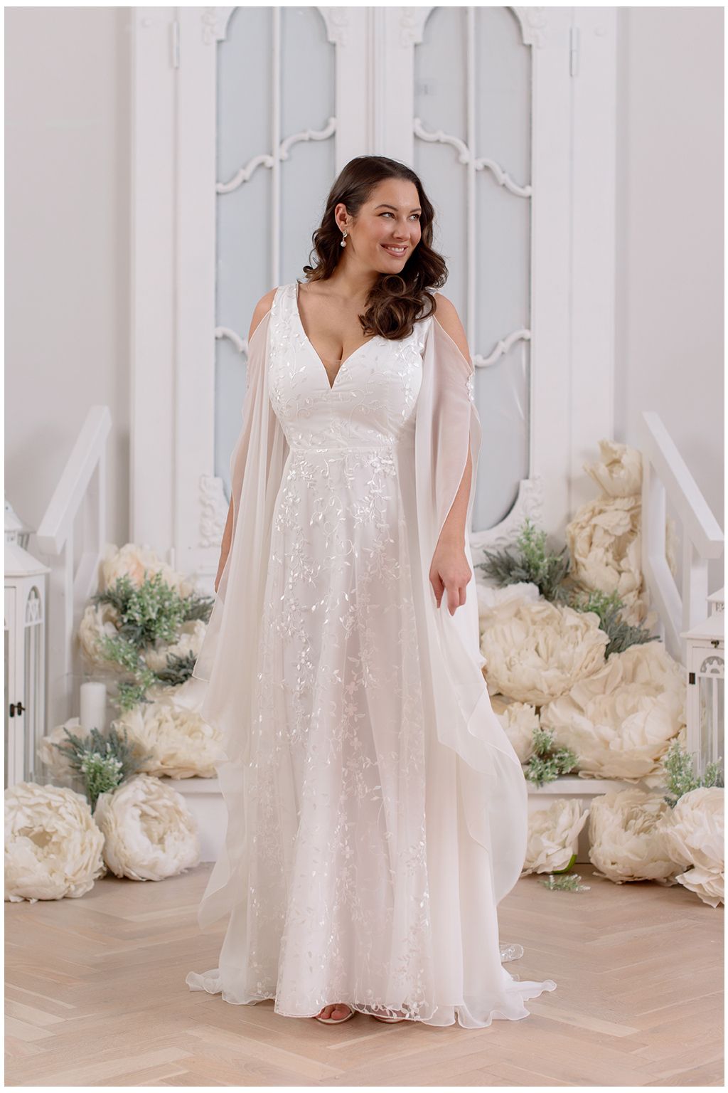 Model Vesna jsou šaty, které působí jako paprsky ranního slunce dopadající na rozkvetlou louku. Výrazný výstřih do V působí elegantně a ženský střih krásně tvaruje postavu. Největší ozdobou Sorayi jsou však dlouhé, rozevláté rukávy, které se při pohybu proměňují v éterické křídla a dodávají šatům slavnostní, téměř pohádkový charakter. Vesna jsou šaty, které v sobě spojují svobodu, jemnost a půvab – ideální volba pro nevěstu, která touží zazářit přirozeným kouzlem a lehkostí.