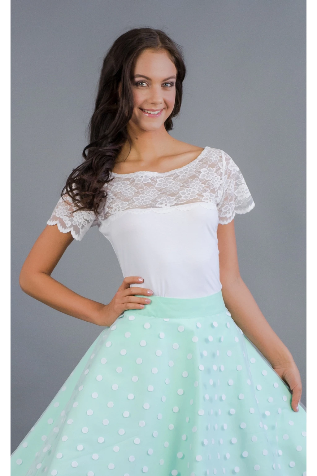 Bílé triko s krajkovým sedlem a rukávy