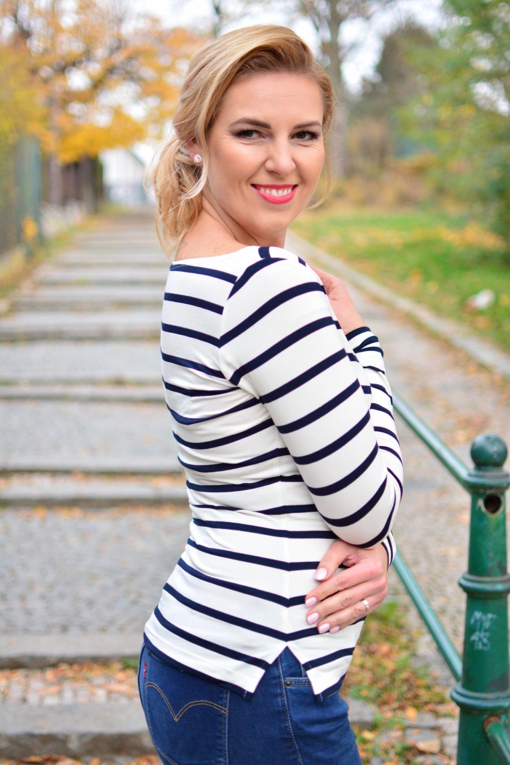 - basic tričko s modro-bílým proužkem
