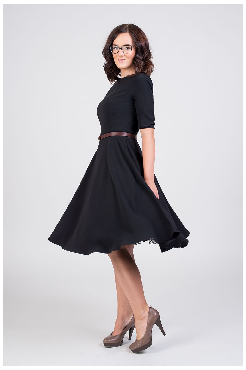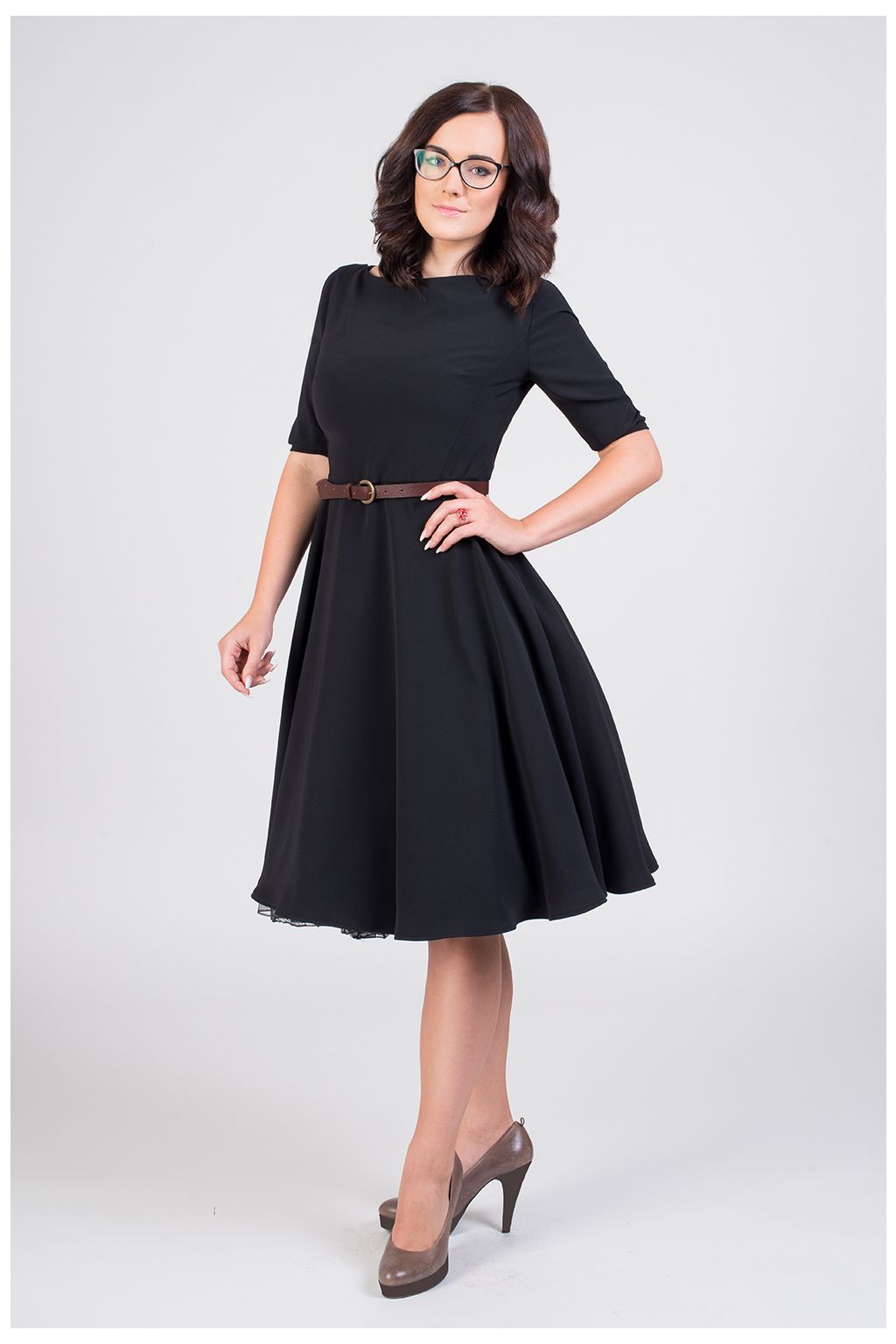 Malé černé šaty by neměly chybět v šatníku žádné dámy. Tyto klasické černé retro šaty jsou ušité z příjemného, měkkého a splývavého materiálu a jsou inspirované módou 50. let. Šaty se vůbec nemačkají, a tak jsou určené zejména do práce, nebo na méně významné společenské události. Model ADELE má širokou bohatou kolovou sukni a rovný lodičkový výstřih a 3/4 rukáv ukončený manžetkou a knoflíčkem. Díky svému střihu šaty svědčí všem typům postav. Šaty lze zakoupit v konfekčních velikostech, nebo je možné zadat vlastní rozměry a šaty ušít na zakázku. Šaty jsou focené se spodničkou a páskem, které nejsou součástí šatů. Spodničku najdete k dokoupení v kategorii Originální výběr - spodničky.