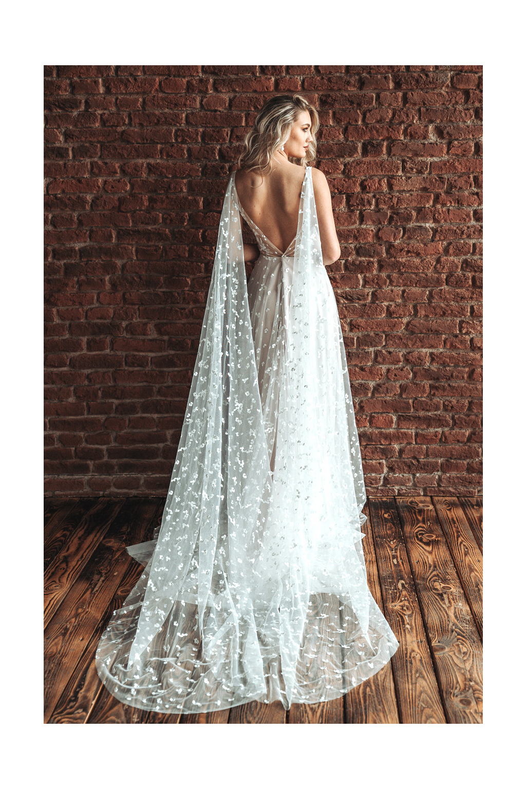 Svatební šaty POPPY s pudrově růžovou podšívkou se skvěle hodí k romantickým obřadům. Obzvláště pokud bude vaše svatba laděná do pastelových tónů a plná květin. Sukně je ušitá z jemného tylu posetého spoustou drobných puntíků a doplňuje ji bohatě zdobený živůtek s květinovou krajkou. Šaty mají decentní výstřih a na zádech průsvitný tyl do V. Pokud chcete originální závoj, který se však nepřipíná do účesu, určitě oceníte originální odepínací dlouhý závoj na ramena, který dodá šatům na objemu a vzdušnosti. Závoj na ramenou si můžete jednoduše v průběhu svatby odepnout.